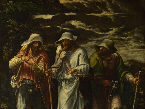 Prints from other masters inspired Van Gogh during his stay at the hospital in Saint-Rémy. He made his version of the Raising of Lazarus from an etching by Rembrandt (1642). With his ginger beard, Lazarus bears some resemblance to Van Gogh himself.